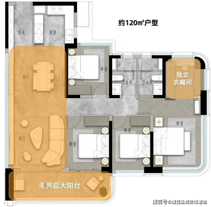 项目主打建面约105-188㎡四房改善户型,包括105㎡、122㎡、128㎡、141㎡、168㎡、188㎡等多个面积段,部分户型可实现双主套设计,得房率超100%(数据来源:广州市住建局户型实测报告)。本次加推的105㎡四房户型,西南望别墅群,东南望小区园林,视野开阔;餐厅宽度达4.3米,客厅开间最大可做到6.1米,空间感十足;约6.1米的南向景观阳台,兼具观景与实用功能,充分满足改善家庭的居住需求。